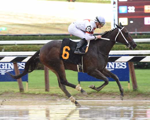 Runway Doll broke her Maiden on July 31st at Saratoga in her debut. She was quick out of the gate going the first quarter in :22.73 under Julien Leparoux. Co-favorite Blind Pool came up the rail to challenge but she was turned away by Runway Doll. She spurted away to win by a stunning 13 1/2 lengths in the end!
