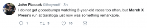 March X Press was a $90,000 Keeneland September yearling purchase by BSW’s Liz Crow on behalf of Golconda Stables. She earned a 52 Beyer in her maiden win and a 72 Beyer in her Stakes win and will now be pointed to the G1 Natalma on September 17th at Woodbine which is a “Win and You’re In” for the Breeders’ Cup Juvenile Fillies Turf.
