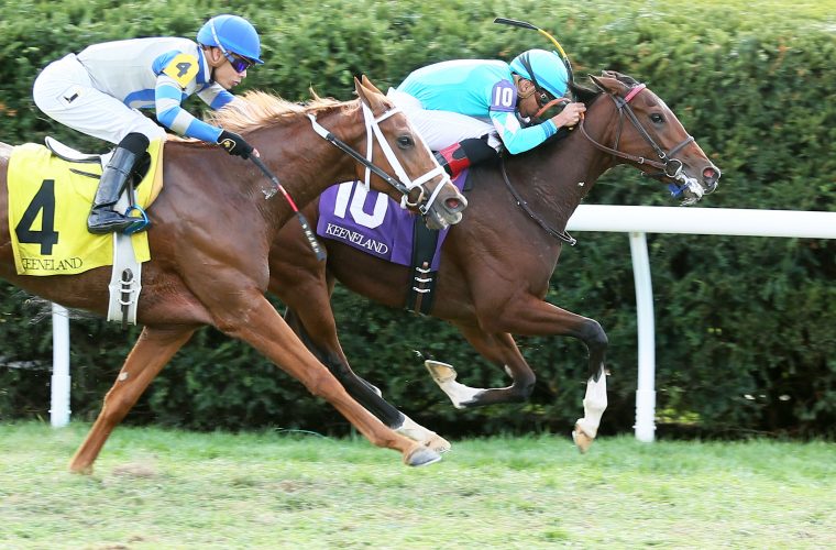 Thewayiam (FR) was previously trained in France by Yan Durepaire and made her first start in the US a winning one for new owners and BSW clients Great Point Stables, Elkstone Group and Bethlehem Stables. Prepared by trainer Graham Motion, she broke well and jockey Manuel Franco gave her a textbook trip. Down the lane, Franco noted that she ducked from something she saw in the infield but that did not keep her from winning by a neck. She has come out of the race well and will be pointed towards a Stakes race before the end of the year.