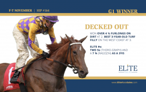 Last year, clients of BSW Bloodstock completed the exacta with Decked Out and Sassy Little Lila, the two separated by a nose in a thrilling finish. Almost a year from that result, ELiTE Sales sold Decked Out at the Fasig-Tipton November Sale for $900,000.