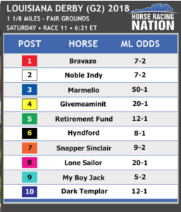 MY BOY JACK heads to the “Big Easy” for the $1,000,000 G2 Louisiana Derby (100-40-20-10) in hopes of keeping Monomoy Stables’ Derby/Oaks Double alive. After an ultra impressive last out, winning the G3 Southwest Stakes at Oaklawn by 4 1/2 lengths, My Boy Jack is the early favorite heading into Saturday.