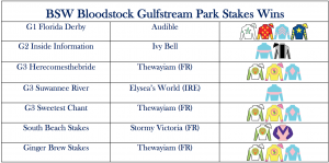 BSW saw unbelievable success during Gulfstream’s Championship Meet taking home 7 Stakes wins including 5 Graded Stakes Victories (one G1, one G2, three G3s).