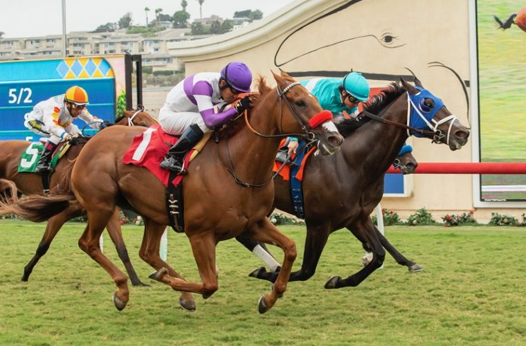 Liam the Charmer (#7) proved victorious after a 363 day layoff for trainer Mike McCarthy under a perfectly timed ride by Drayden Van Dyke. Biding his time at the back of the field, Liam the Charmer displayed his quick turn of foot to weave his way through horses in the stretch, getting his nose down in front on the wire.