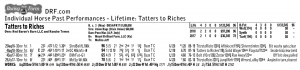 Earning a career best 96 Beyer for this effort, Tatters was three deep early, took the lead in the upper stretch and inched away under left handed urging to win clear.