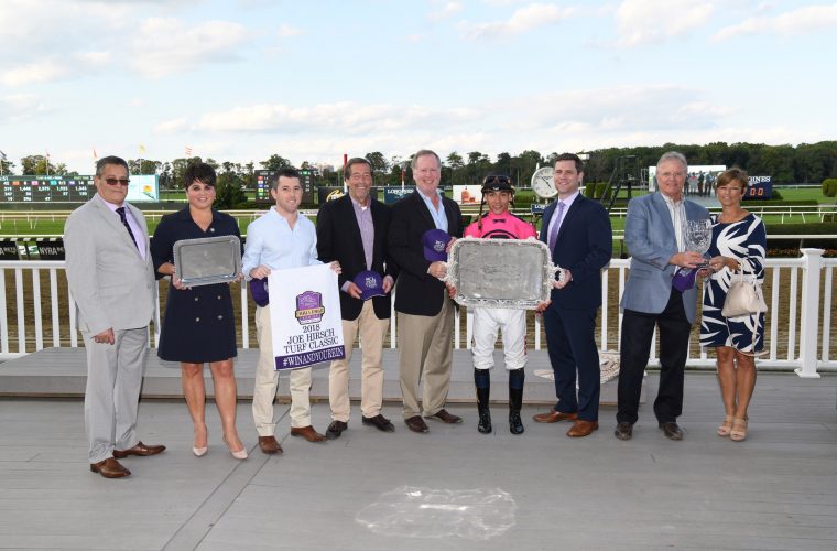 Trainer Mike McCarthy finished a great weekend for BSW client Sol Kumin on Sunday at Santa Anita when his charge, LIAM THE CHARMER, won the G2 John Henry Turf Classic! Liam the Charmer was a $100,000 purchase by Brad Weisbord at the 2017 Keeneland November Sale. Liam the Charmer is now 2-for-2 for Madaket Stables thanks to a wonderful training job by Mike McCarthy who has this 5yo son of Smart Strike running his best races coming off a 1 year layoff! The win was followed by a very cool moment in the winner’s circle… thank you Jose!