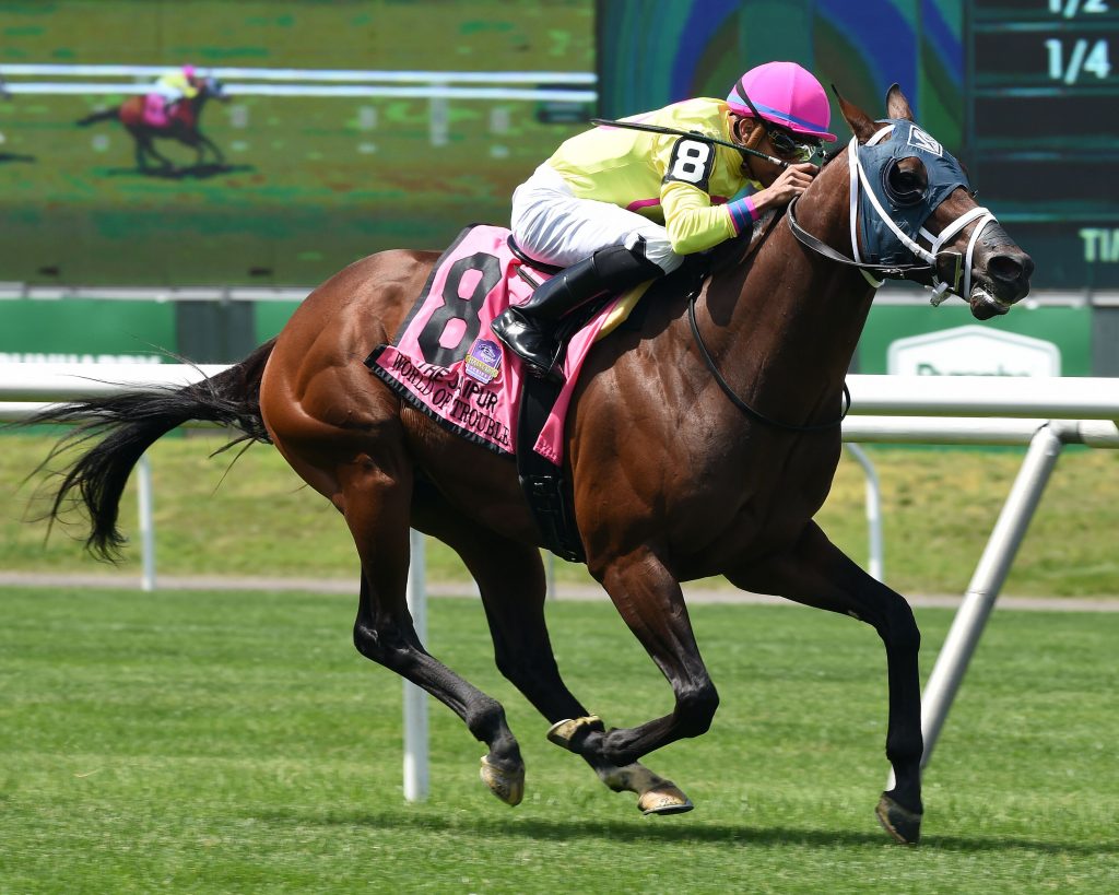 World of Trouble became a G1 winner on dirt and turf after he sped to victory in the Jaipur for owners Michael Dubb, Madaket Stables and Bethlehem Stables. For his efforts, he earned a 106 Beyer Speed Figure, marking his seventh consecutive Beyer Speed Figure of 100+. He is undefeated in 2019 and will likely be seen next in Saratoga.