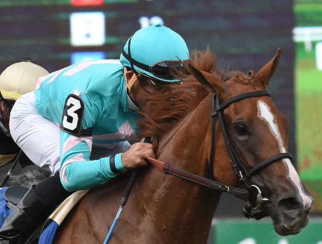 Coming into the race off a layoff of nearly seven moths since her triumph in the G1 Matriarch at Del Mar in December, Uni sat at the rear of the field before inhaling her competition with ease at the top of the lane to win geared down by a length.