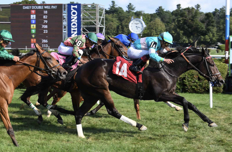 In the tenth and final race of the day, Saltking, a BSW private purchase on behalf of Madaket Stables, joining original owners Commonwealth Stable and Randy Bradshaw, took down the state-bred maiden special weight race off a six month layoff for trainer Mark Hennig. Breaking well and sitting towards the rear of the field, he too unleashed a big late kick to get up in the final 1/16 of a mile over the firm Saratoga turf course.