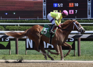 On August 18th, Shadilee, an $80,000 purchase from Fasig-Titpton October on behalf of the same ownership group took her maiden by an easy 3 1/4 lengths after flying up the rail to stun her competition. The chestnut daughter of Declaration of War earned a Beyer Speed Figure of 73 for her effort.