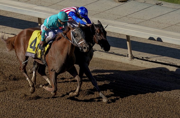 November 1, 2019 : British Idiom, ridden by Javier Castellano, wins the Breeders Cup Juvenile Fillies on Breeders Cup Championship Friday at Santa Anita Park in Arcadia, California on November 1, 2019. John Voorhees/Eclipse Sportswire/Breeders Cup/CSM