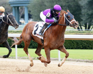 Warrior’s Charge, who was making just his second start since a bout of colic sidelined him last summer, took down his first graded victory in the G3 Razorback Handicap at Oaklawn after an exhilarating stretch drive for owners Ten Strike Racing and Madaket Stables. The dark bay son of Munnings bravely turned away Bankit who had ranged up to his outside at the 1/8 pole, never letting him by to win by a head. Warrior’s Charge has now won four of his last five starts with a close 4th place finish in last year’s G1 Preakness sandwiched in between.