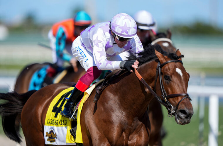 SMOKIN T, winner of the G3 River City Stakes at Churchill, added a $100,000 HCP win to his resume in his first start since October 2024. Trained by Chad Brown, Smokin T was a BSW/Crow purchase for Mrs. Gay Smith out of the Keeneland November Horses of Racing Age sale this past November, out of the Denali Consignment, just two months ago. He finished ahead of stablemate, Jerry the Nipper by 1 1/4 lengths who is also a BSW/Crow purchase for the same owner. In a Jam was 3rd. SMOKIN T stalked in the 4 path, ranged up in a ride by jockey, Frankie Dettori, while floating out into the 7 path turning into the lane, and stayed on to draw clear in the final sixteenth. JERRY THE NIPPER broke in and bumped an inner foe, prompted the pace in the three path, bid in the two path around the far turn, took command while being coaxed from the three path into the stretch, edged clear passing the eighth pole, but was caught by Smokin T in the final sixteenth. Smokin T is by War Front, out of the Ghostzapper mare, Wine Princess. He was bred by Dattt Farm, LLC in Kentucky.